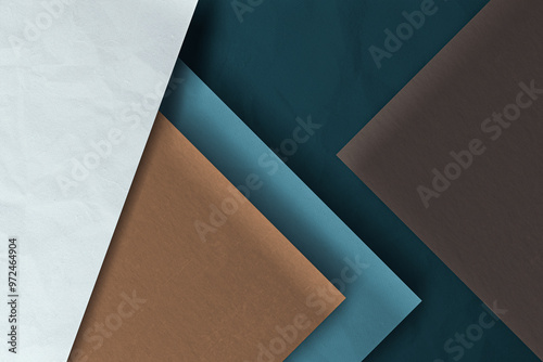 Fototapeta premium Elegance meets innovation in this 3D background, where material textures and geometric shapes come together in a palette of blue, white, and brown