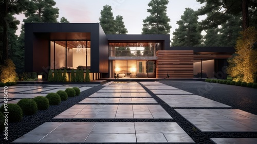 Obraz premium elegance modern house driveway