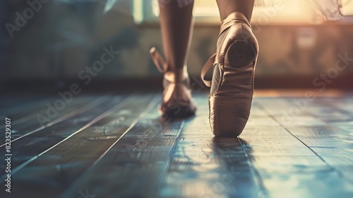 Fototapeta premium Elegance Poised in Pointe Shoes A Glimpse into the Precision of Ballet