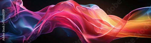 © Thanakorn, Obraz premium Elegant abstract art with fluid organic shapes vibrant gradient hues on a deep black backdrop