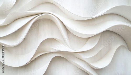 © Anastasiia, Obraz premium Elegant abstract backdrop featuring a textured wave design in white plywood