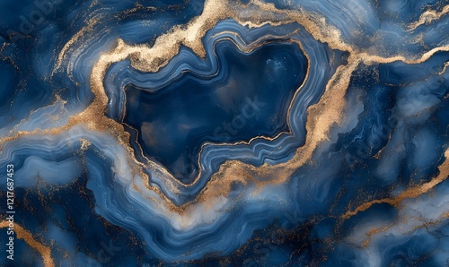 Fototapeta premium Elegant Abstract Blue and Gold Texture with Fluid Marble Effect and Metallic...