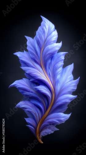 Obraz premium Elegant abstract blue leaf with gold stem and flowing textured petals design