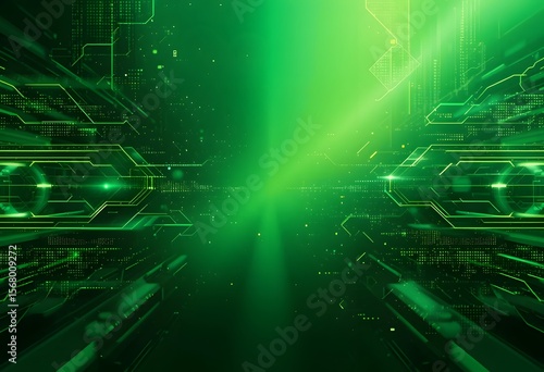 © Dreamstory Studio, Obraz premium Elegant Abstract Emerald Green Layers with Digital Matrix Patterns