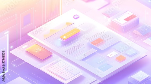 Fototapeta premium Elegant Abstract Geometric Shapes Composition in Pastel Gradient Tones on White Background with 3D