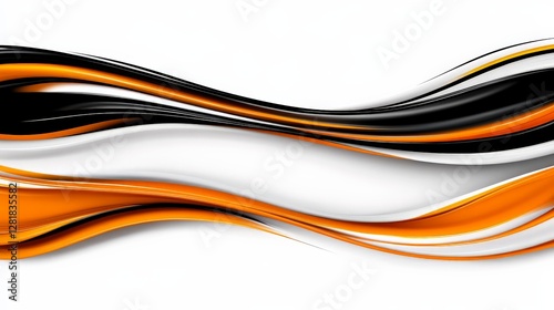 © NAPHAT, Obraz premium Elegant Abstract Waves in Orange, Black, and White Color Palette