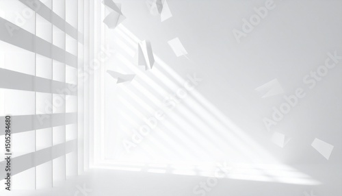© sala, Fototapeta premium Elegant abstract white podium in sunlight with shadow, striped place with perspective