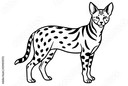 © Alina, Obraz premium Elegant Addax antelope silhouette in minimalist line art vector style. This clean and modern wildlife design features the distinctive curved horns and sleek profile of the desert-dwelling Addax, ideal