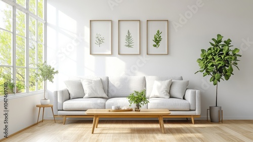 Obraz premium Elegant and Bright Living Room with Plant Decor