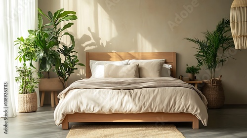 Fototapeta premium Elegant and Cozy Modern Bedroom Interior Design with Stylish Decor, mockup,...