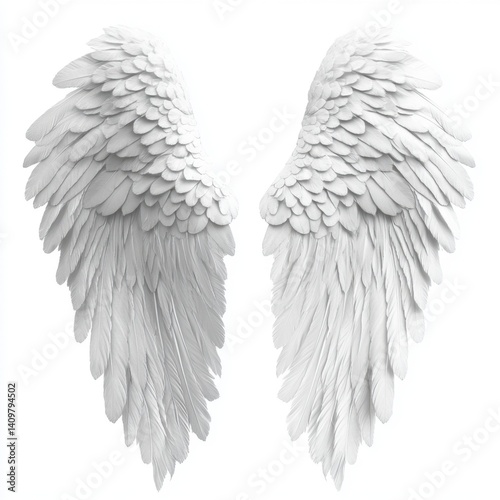 Obraz premium Elegant and Ethereal White Angel Wings Isolated on White Background