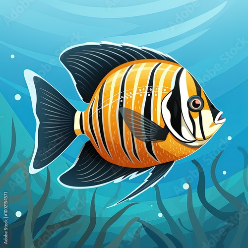 Naklejka premium Elegant and Minimalistic 2D Illustration of a Tropical Striped Angel Fish