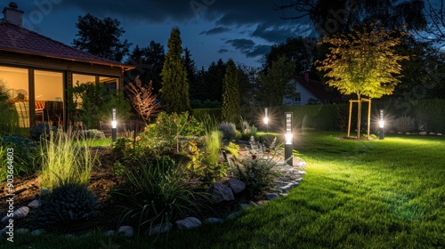 Obraz premium Elegant and Modern Garden LED Lighting Illuminating the Space Modern...