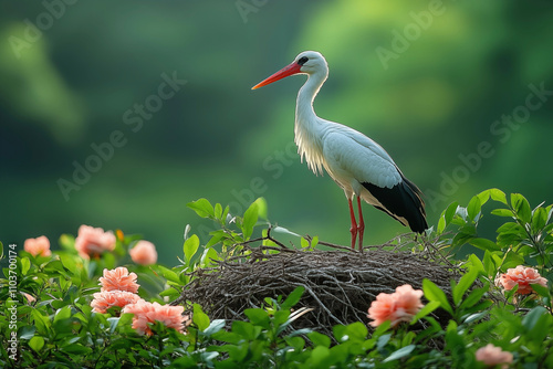 Fototapeta premium Elegant and poised, the stork stands as a symbol of grace and new beginnings....