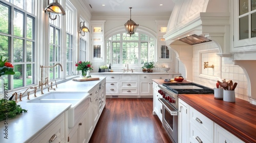 Fototapeta premium Elegant and refined kitchen with a properly spaced walkway, ensuring ease of...