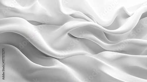 © Tikka MS, Obraz premium Elegant and Textured White Fabric Waves in a Soft Light Setting for Modern Design Aesthetics