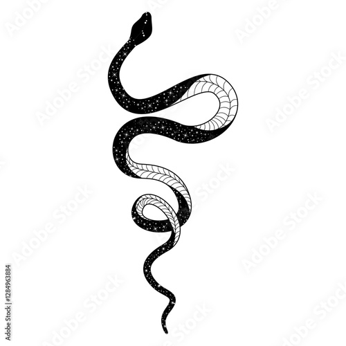 © Prozo, Obraz premium Elegant and whimsical silhouette of a snake intertwining in a graceful dance of doodles and patterns