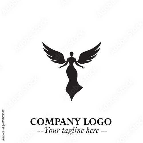Fototapeta premium Elegant Angel Woman Silhouette Logo Symbol on White Background