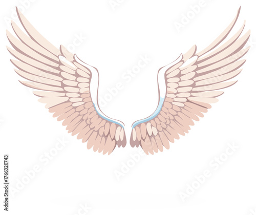 Naklejka premium Elegant angelic wings spread open in soft pastel colors vector illustration.