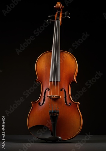 © photohappy, Fototapeta premium Elegant antique wooden violin resting alone, showcasing masterful craftsmanship and rich historical texture against a dark background ,orchestra ,fiddle ,musical instrument
