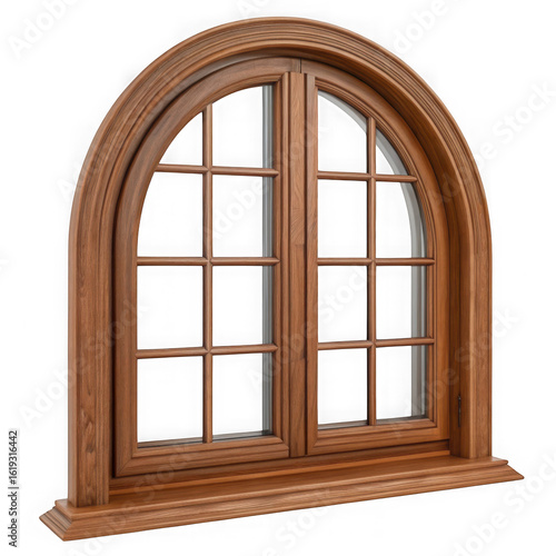 © pgdhabibul, Fototapeta premium Elegant arched wooden casement window with detailed mullions and a sill isolated on transparent background