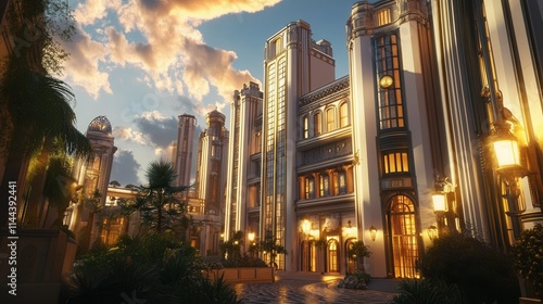 Obraz premium Elegant Architectural Details of a Stunning Urban Skyline at Dusk