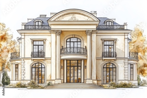 © Arwin, Fototapeta premium Elegant architectural rendering of a grand estate home.