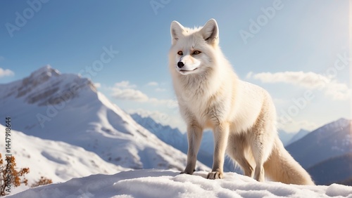 © Jisan, Obraz premium "Elegant Arctic Fox in Snowy Tundra During Winter Daylight"