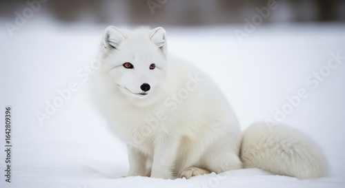 Fototapeta premium Elegant Arctic Fox Sitting in a Snowy Landscape, Winter Wildlife Portrait