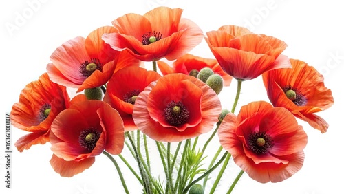 © Md, Obraz premium Elegant arrangement of vibrant red poppy flowers in full bloom on white