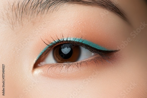 Obraz premium Elegant Asian Woman with Single Eyelid and Precise Eyeliner in Beauty...