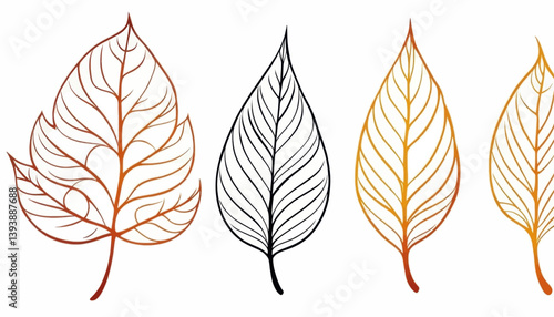 Obraz premium Elegant Autumn Leaves Design Set Botanical Illustration featuring Orange Black and Gold Leaf Line Art for Fall Decor