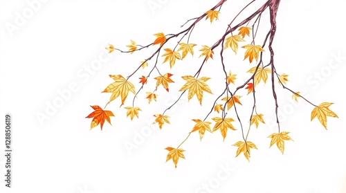 © AqsaGraphics , Obraz premium Elegant Autumn Maple Tree Branch, Vintage Botanical Illustration on White Background