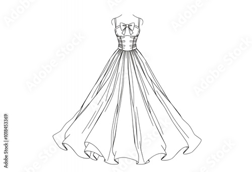 Obraz premium Elegant Ball Gown Dress Sketch Fashion Illustration Wedding Bridal Gown Dress Design
