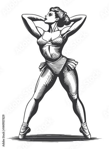 Fototapeta premium Elegant Ballerina Engraving in Classic Drawing Style