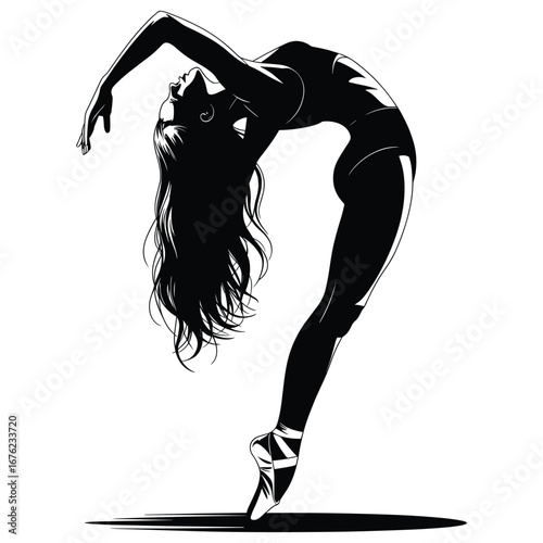 © GFX_Designer360, Obraz premium Elegant ballerina in a dramatic arched pose silhouette
