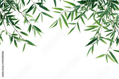 Naklejka premium Elegant Bamboo Leaves Border on White
