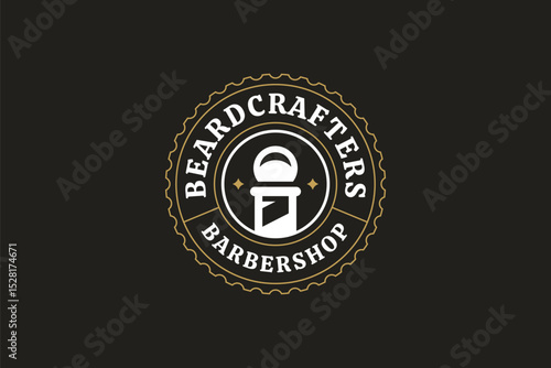Fototapeta premium Elegant barbershop logo with a retro design, including decorative elements. Ideal for grooming services and fashion-oriented businesses. Vector illustration