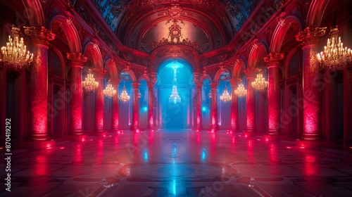 Fototapeta premium Elegant Baroque Hall with Vibrant Lighting - Generative AI