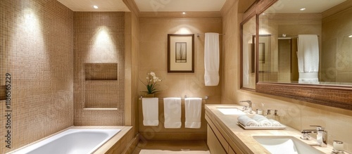 Obraz premium Elegant bathroom design with light tiles and contemporary mirror ideal for...