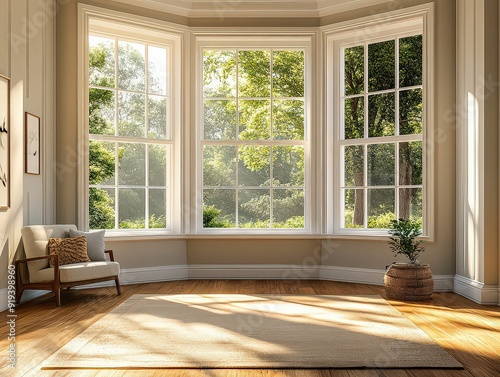 Obraz premium Elegant bay windows extending outward from the wall, creating a spacious...
