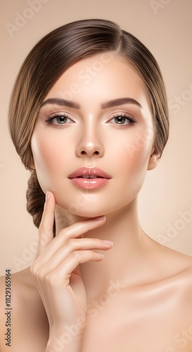 © Rifki Fachrudin, Fototapeta premium Elegant Beauty Portrait Womans Face with Soft Lighting and Hand Gesture.