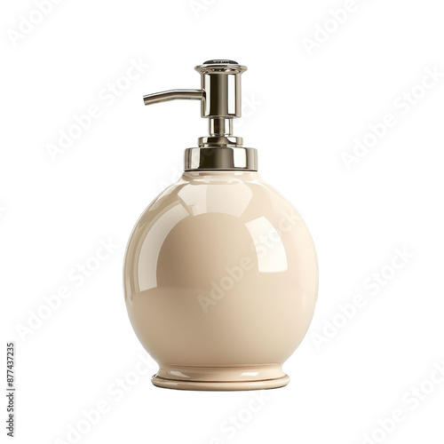 © komgritch, Obraz premium Elegant Beige Ceramic Soap Dispenser with Chrome Pump, isolated on white background, transparent background