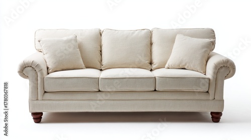 © Evon J, Fototapeta premium Elegant beige sofa with cushions on white background