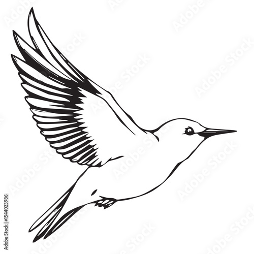 © Ayesha, Fototapeta premium Elegant Bird in Flight A Simple Black and White Line Drawing