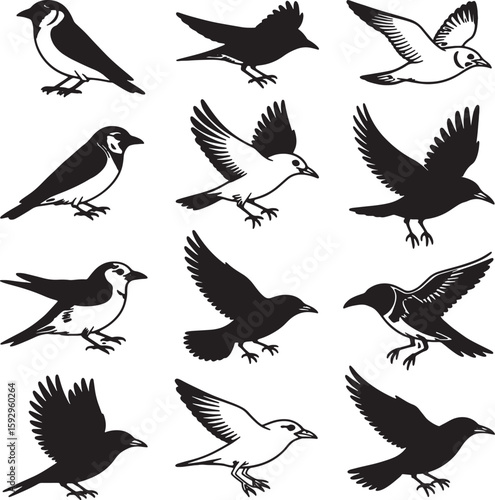 Fototapeta premium Elegant Bird Line Art Minimalist Black and White Bird Vector Illustrations