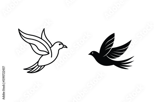 Obraz premium Elegant Bird Silhouette Set Flying Birds Line Art Vector Illustration