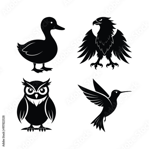 Fototapeta premium Elegant bird silhouette vector collection.