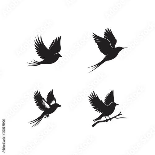 Obraz premium Elegant Bird Silhouettes in Flight and Perch Multiple Vector Illustration