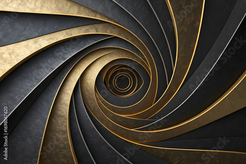 © muqadasNosheen, Obraz premium "Elegant Black and Gold Abstract Paper Layer Spiral with 3D Texture"